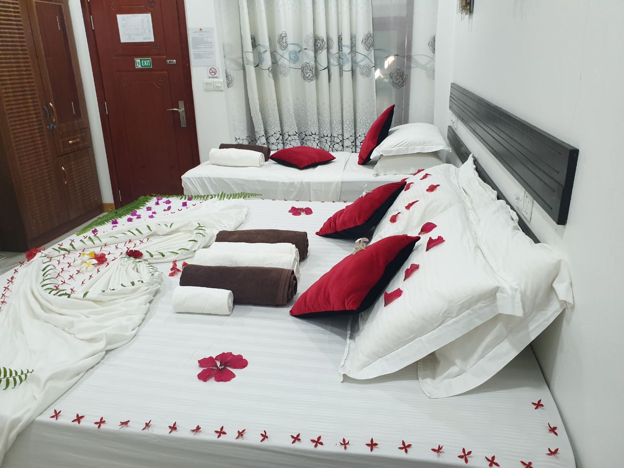 Room Specification : Deluxe family Room Includes Double bed and Twin bed Adults: 4 Bed Type: King Bed Prices start at: $80 per night