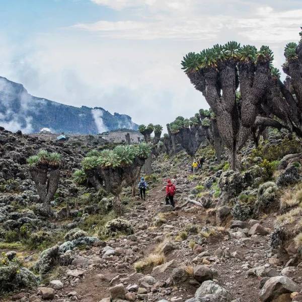We start the day with a steady ascent to Second Cave, then proceed through moorland, veering off the main trail to follow a smaller path towards the striking peaks of Mawenzi. Our trek concludes at Kikelewa Cave, where we will spend the night