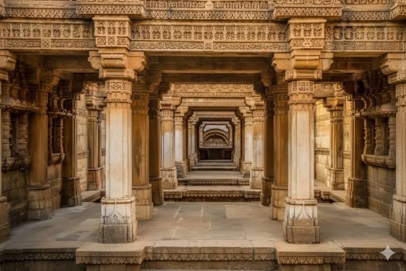 Explore the beautifully carved Adalaj Stepwell, an architectural marvel reflecting Indo-Islamic design.