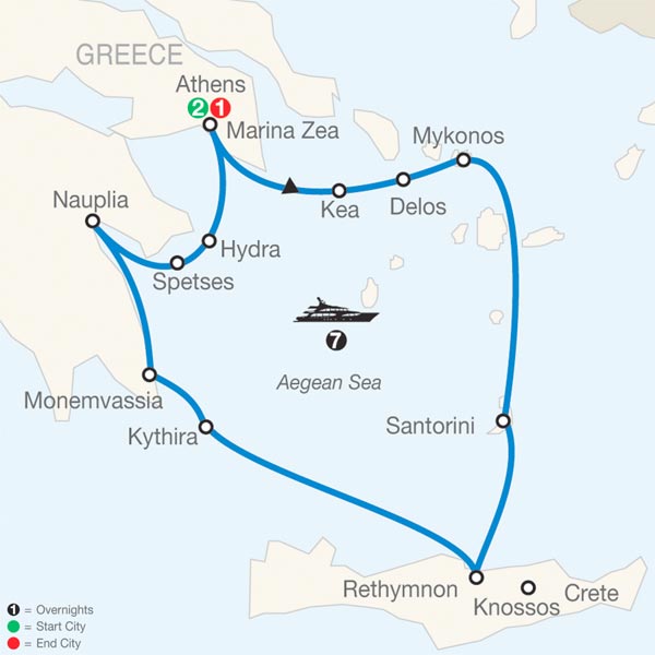 Athens–marina Zea (embarkation)–kea.
