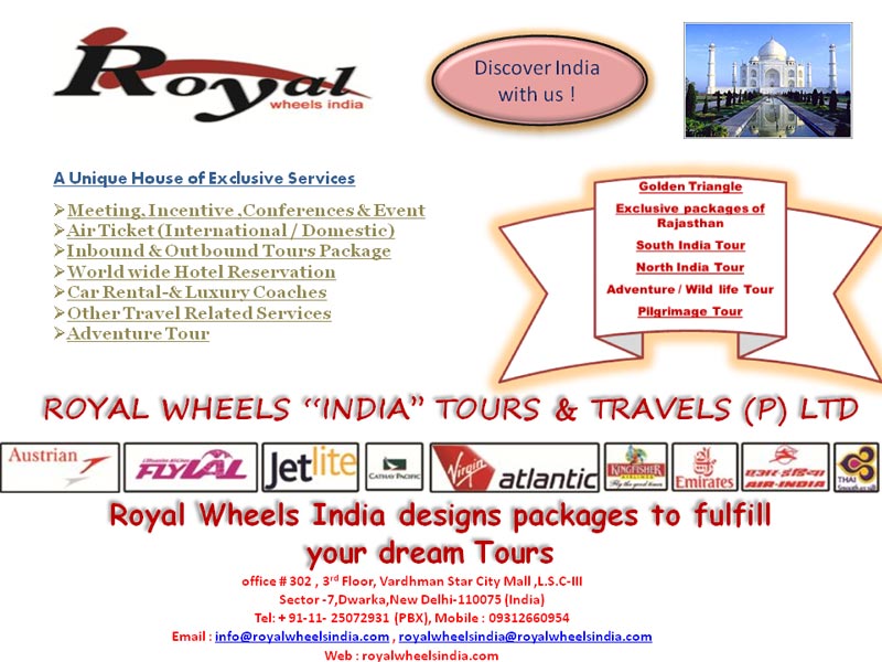Royal Wheels India Tours & Travels Pvt. Ltd. takes pride in introducing ourselves as a composite organization, where the complete range of Tours & Travels services can be obtained under one roof. With a totally dedicated and experienced team, the com Know more..