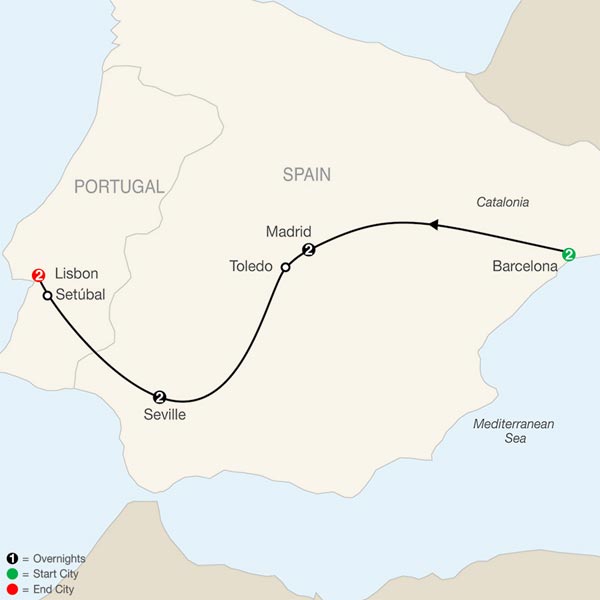 Barcelona - Valencia - Madrid - Seville - Lisbon - Porto - Granada - Salamanca