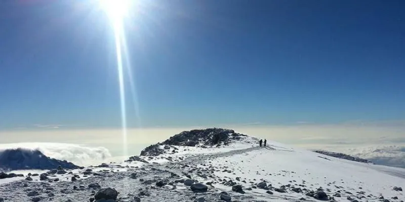 Your guide will wake you around 23:30 for tea and biscuits. You will then begin your summit attempt. The route heads northwest and you will ascend over stone scree. During the ascent, many hikers feel that this is the most mentally and physically challenging part of the climb. In about 6 hours, you will reach Stella Point (5685 m), located on the crater rim. After enjoying the magnificent sunrise, you will continue ascending for about 2 hours on a snow-covered trail to Uhuru Peak (5895 m). Reaching the summit of Mt. Kilimanjaro is a lifetime accomplishment!
