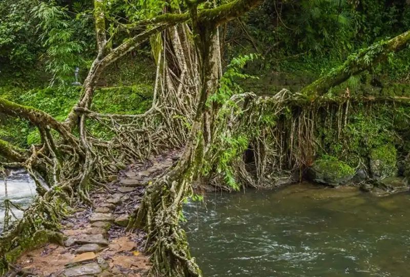 Short trek to the iconic Living Root Bridge.