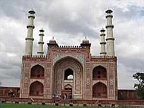 Fatehpur Sikri shared its imperial duties as a capital city with Agra, where a bulk of the arsenal, treasure hoards and other reserves were kept at its Red Fort for security. During a crisis, the court, harem, and treasury could be moved to Agra, only 26 miles away, less than a day's march. Built in red sandstone in honor of Sufi saint Salim Chisti in 1571 by Mughal emperor Akbar, who foretold the birth of 3 sons to the Emperor, is an example of robust stability combined with originality. Each important edifice here represents a type by itself. Notable among them are the Diwan -e- Khas, Punch Mahal, the Tomb of Salim Chisti, and the Buland Darwaza a gateway built by the great Mughal emperor, Akbar in 1601 to commemorate his victory over Gujarat.