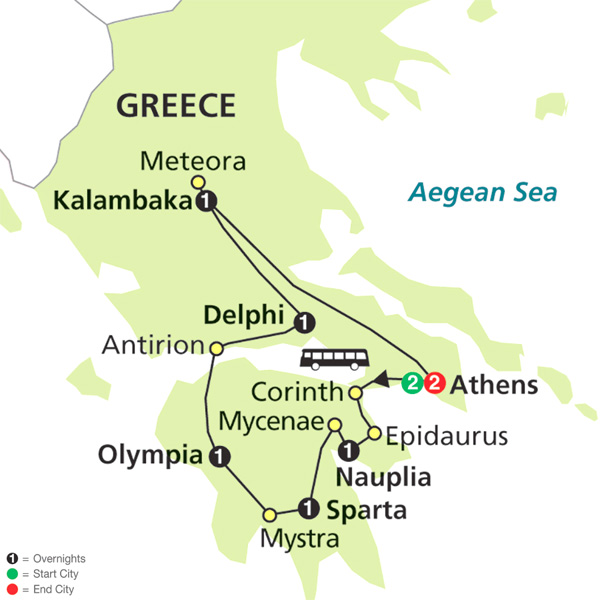 A short drive to Meteora, which is a cluster of MONASTIC BUILDINGS perched in an unforgettable manner on a set of rising rock formations. Your included visit is certainly the day’s highlight. Later, drive south to Athens for an overnight. Why not join the optional Greek dinner.